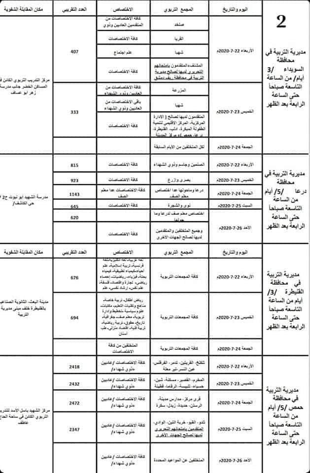 أسماء الناجحين بنتائج مسابقة التعاقد في وزارة التربية السورية الفئة الأولى 2020 عاديين وشهداء وزارة التربية السورية. نشرت ﻭﺯﺍﺭﺓ ﺍﻟﺘﺮﺑﻴﺔ السورية قبل قليل أسماء ﺍﻟﻨﺎﺟﺤﻴﻦ ﻓﻲ ﺍﻻﻣﺘﺤﺎﻥ ﺍﻟﺘﺤﺮﻳﺮﻱ ﻟﻤﺴﺎﺑﻘﺔ ﺍﻧﺘﻘﺎﺀ ﺍﻟﻤﻌﻠﻤﻴﻦ ﺍﻟﻮﻛﻼﺀ للعام 2020 في كافة المحافظات السورية.